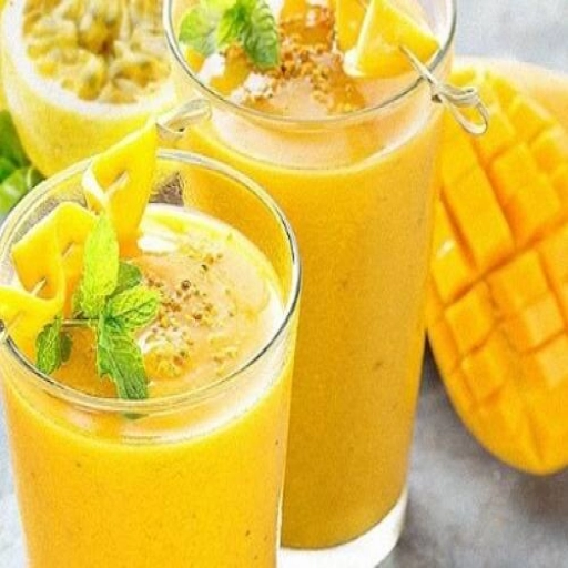 Esse misturinha é composto por manga, abacaxi, maracujá e água.