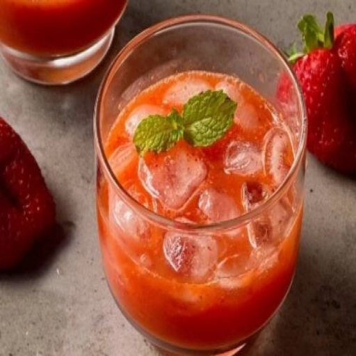 Preparamos na hora, feito com a própria laranja e morango picado.