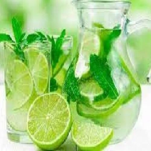 Preparamos na hora, feito com água e pedaços da fruta e folhas de hortelã.